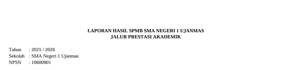 Hasil Kelulusan Seleksi Penerimaan Murid Baru SMAN 1 Ujanmas Jalur Afirmasi, Domisili, Prestasi Akademik Tahun Pelajaran 2025/2026